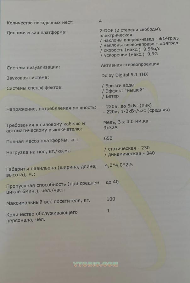 • Формат: аттракцион-кинотеатр виртуальной реальности STEREOLIFE с подвижной платформой и эффектом полного погружения, рассчитанный на несколько посетителей одновременно .